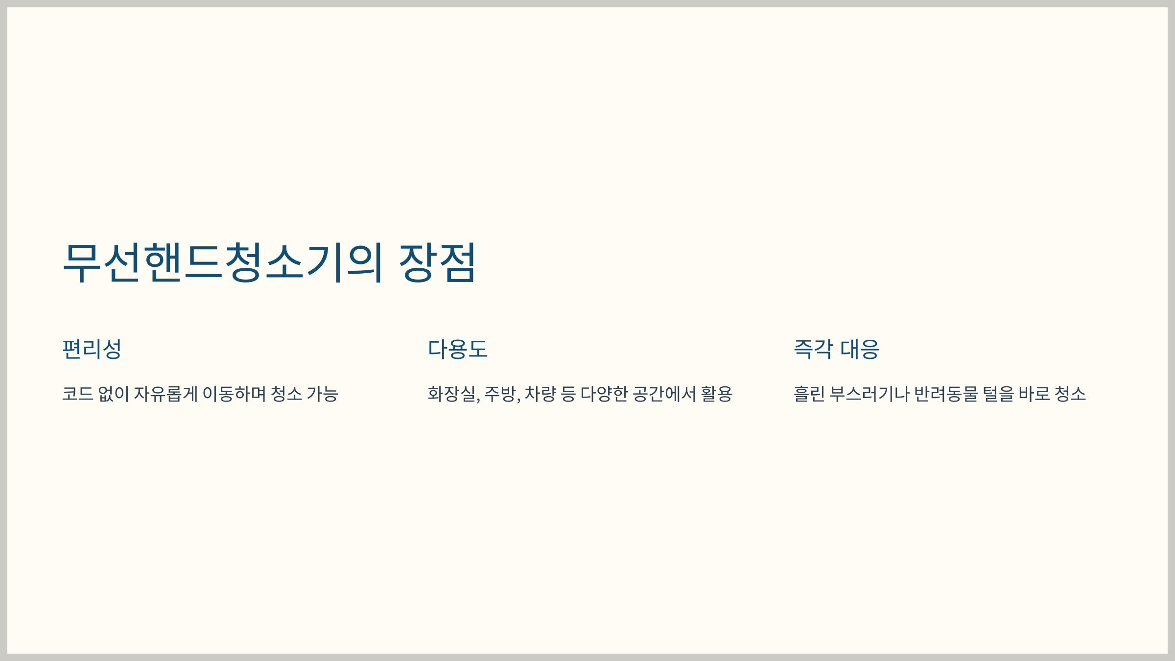 무선핸드청소기를 구매하기 전에 이러한 요소를 따져보면, 검색 의도에 맞춰 최고의 만족도를 얻을 수 있습니다.