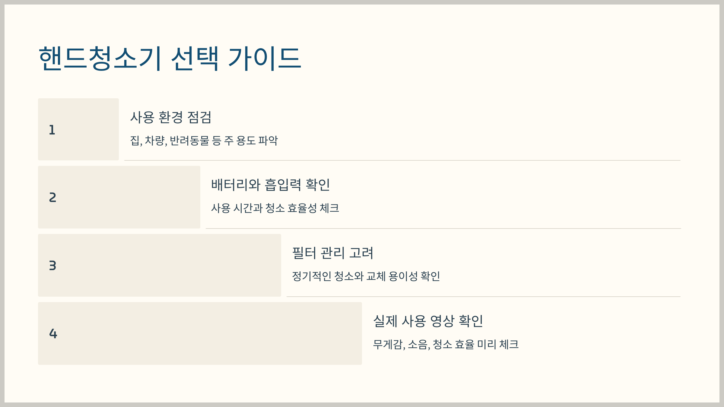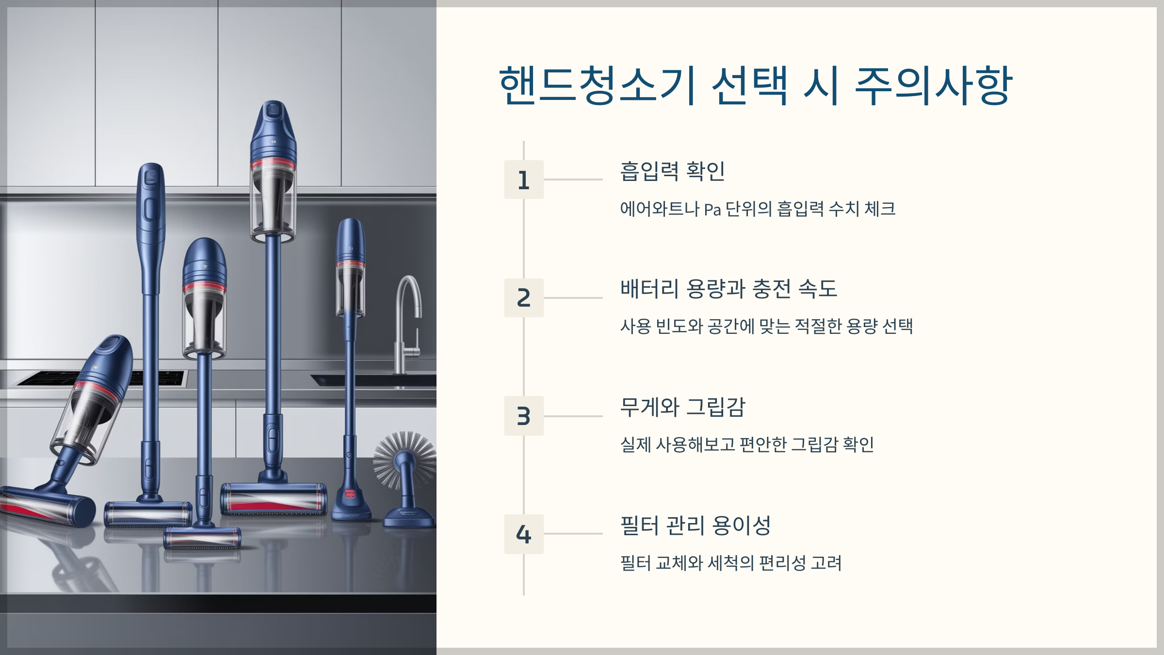 이 과정을 순서대로 따라가면, 당신에게 맞는 핸드청소기를 찾는 것은 물론이고, 실제 사용 과정에서 생길 수 있는 궁금증과 불편사항도 대부분 해소될 것입니다.